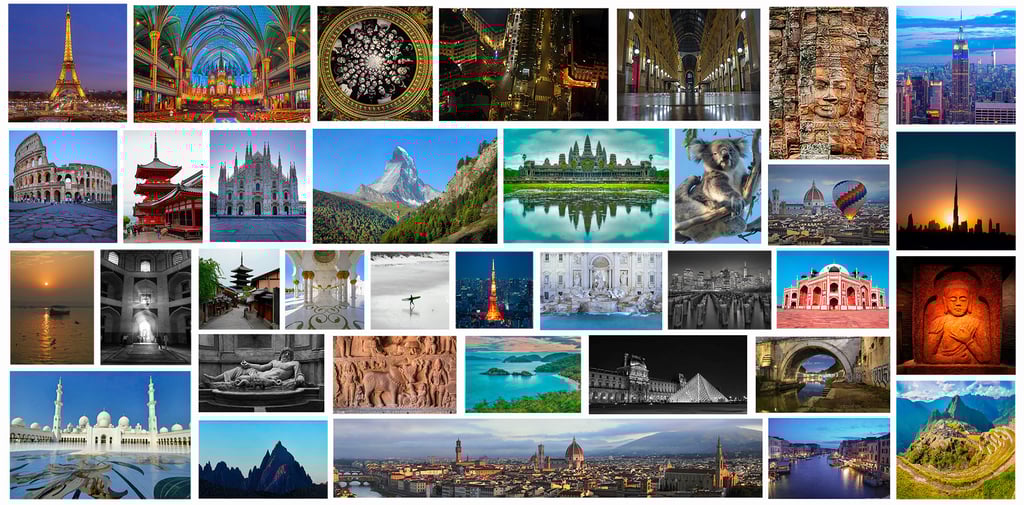 We have an extensive collection of picture-postcard perfect images from all over the world, including - Antarctica, Kenya, Cambodia, India, Canada, USA, The Amazon, Galapagos, Patagonia, Dolomites, Swiss Alps - to name a few; and many cities including Venice, Paris, Kyoto, New York, etc. (and they can, and should be enjoyed at larger sizes!)